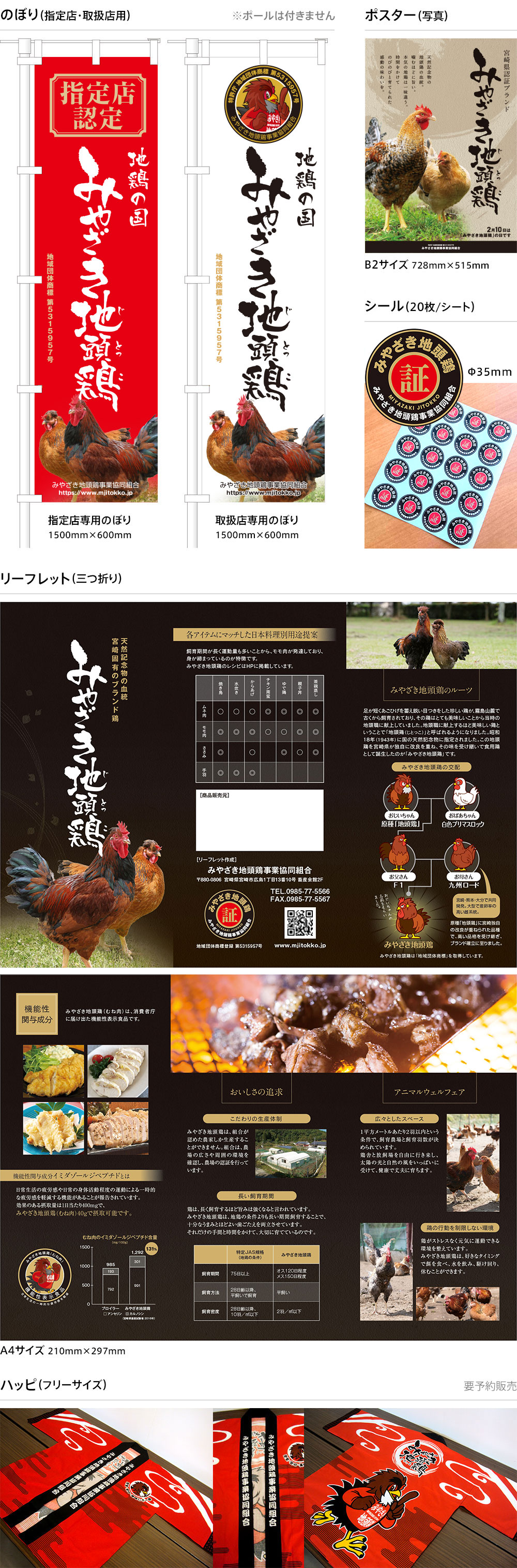 みやざき地頭鶏をもっと多くの方に知って頂くためポスターやのぼり等を販売しております。